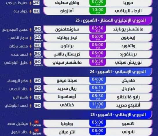 مباريات يوم السبت 12 شباط (فبراير) 2022:
