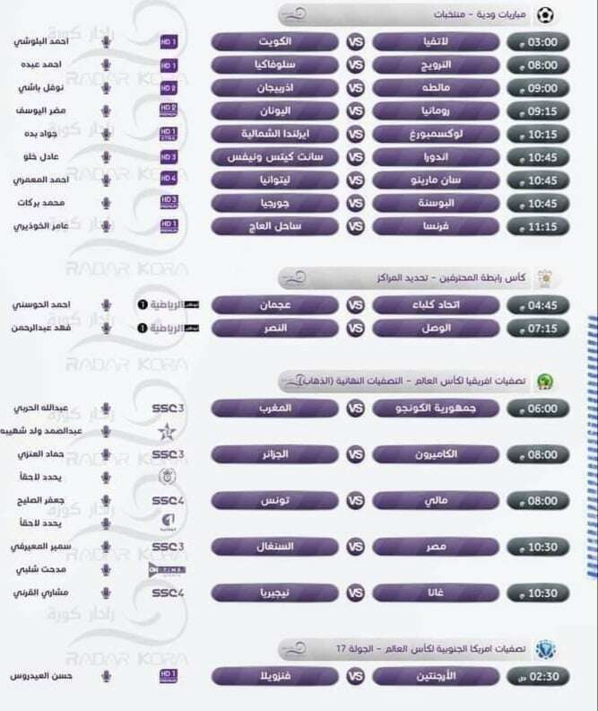فيما يلي أبرز مباريات يوم الجمعة 25 آذار 2022: