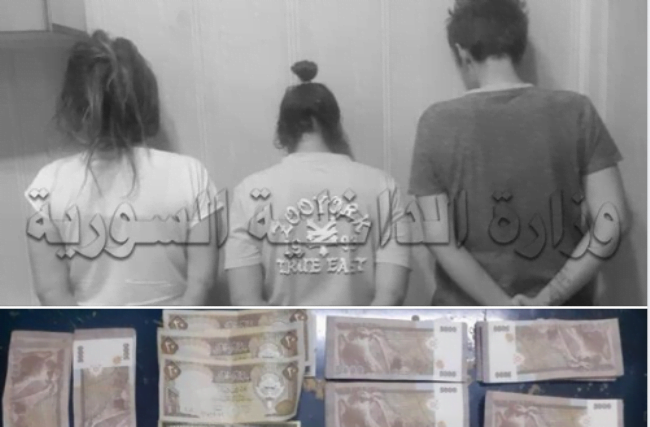 أعلنت وزارة الداخلية اليوم الأحد، أن الجهات المختصة ألقت القبض على 3 فتيات في دمشق بتهمة الترويج للعملات المزورة وضبط مبالغ مالية مزورة بالليرة السورية والدولار الأميركي كانت بحوزتهن.