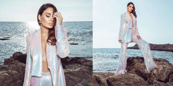 وشاركت سيرين عبد النور الصور مع متابعيها عبر انستغرام، وبدت في الصور مرتدية بدلة مفتوحة الصدر ولامعة بألوان ممتزجة ومتموّجة بين الأزرق، الأبيض والزهري.