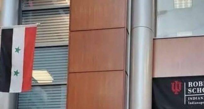 وذكر موقع نيويورك نيوز، أن جامعة إنديانا الأميركية رفعت الغلم السوري على المدخل الرئيسي لها تكريماً لتفوق المحامي شادي السقا وهو سوري الأصل من بلدة الروضة في مدينة بانياس بمحافظة طرطوس.