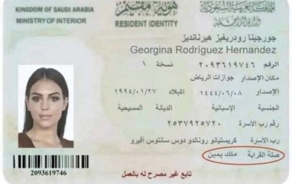انتشر عبر مواقع التواصل صورة لهوية إقامة في السعودية قيل أنها تعود لعارضة الأزياء جورجينا رودريغيز