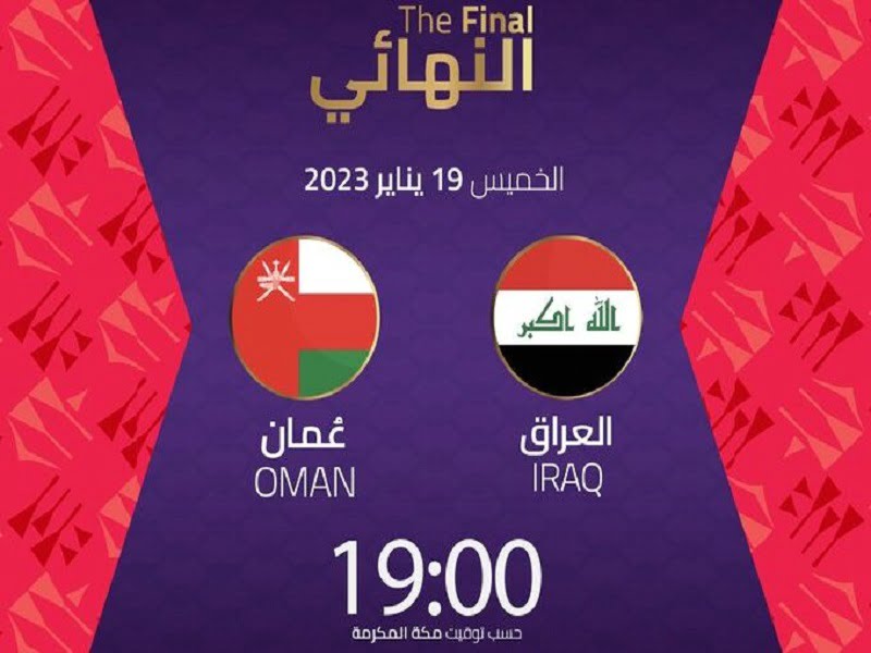 العراق ضد عمان بث مباشر اليوم الخميس 19 كانون الثاني (يناير) 2023 لمباراة نهائي خليجي 25 بين عمان ضد العراق على أرضية ملعب البصرة الدولي.